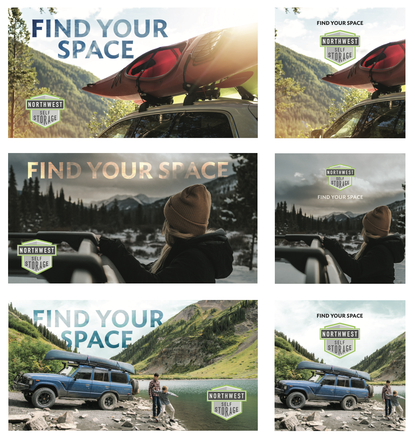 “Find your space” ad campaign for NWSS. This included building a video for YouTube, social ads, and Google display ads. This campaign was created for the PNW adventurer who needs extra storage for all their equipment.